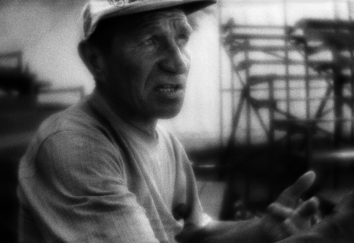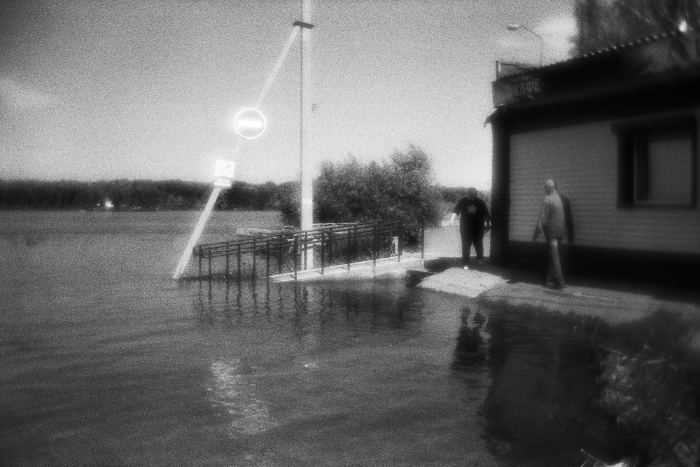 Чоя, Республика Алтай | Choya, Altai Republic, 2021. The workers drove the truck into the river and use it as a platform for painting the bridge. Choya settlement, Altay region, Russia, 21.06.2021