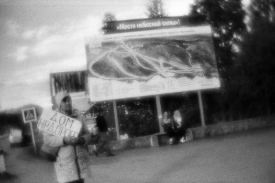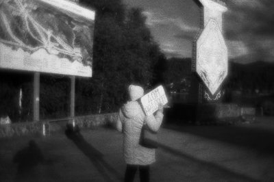 Артыбаш, Республика Алтай | Artybash, Altai Republic, 2021. A woman holds a poster with an announcement about renting out housing. Artybash settlement, Altay region, Russia, 21.06.2021